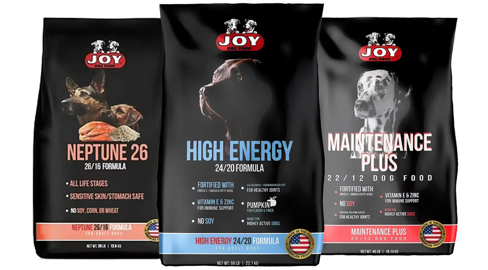 Since 1945, professionals have recommended Joy Dog Food as the top premium dog food for working dogs and pets alike.